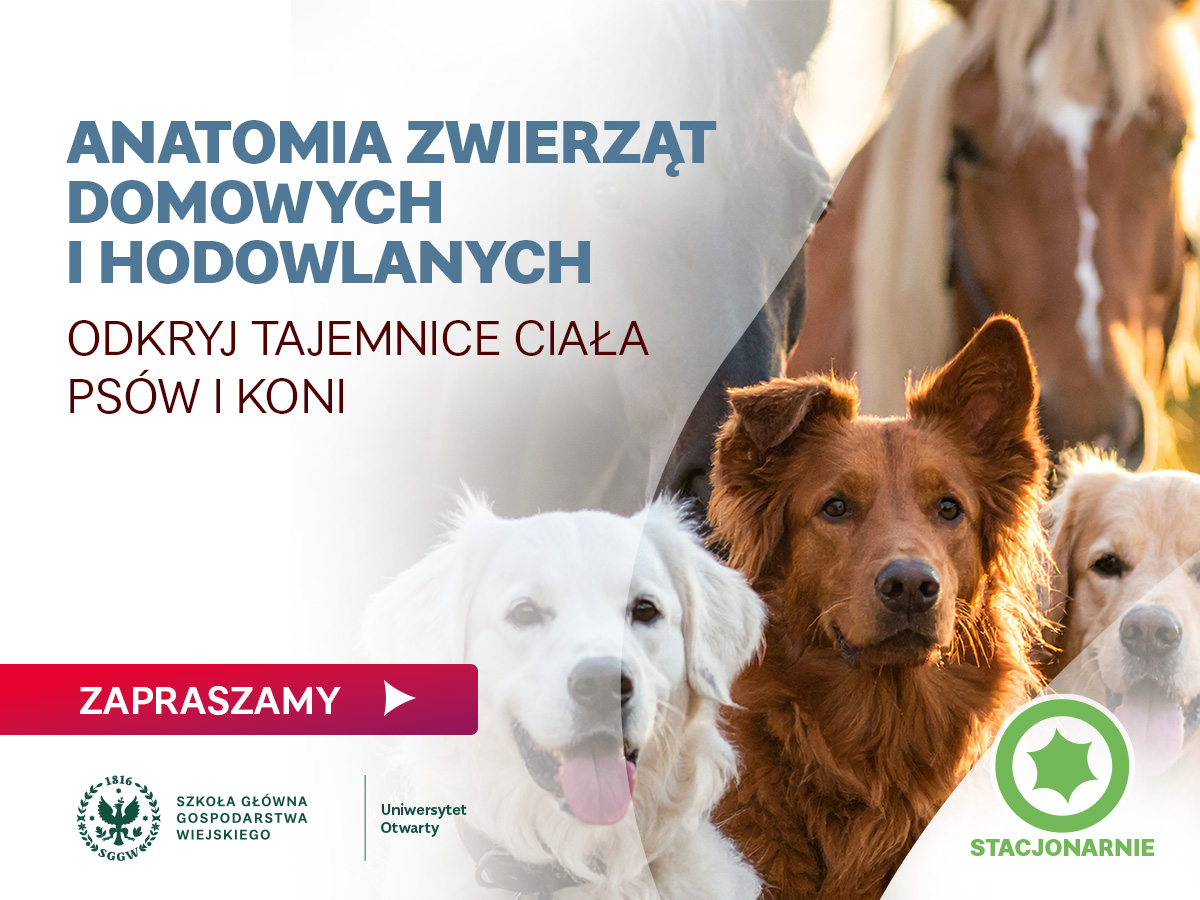 Zapraszamy na kurs anatomii zwierząt domowych! Jeśli zastanawiasz się nad wyborem studiów weterynaryjnych, planujesz pójść do technikum weterynaryjnego, chcesz zgłębić wiedzę na temat anatomii zwierząt domowych, lub po prostu interesuje Cię fascynujący świat ssaków, ten kurs jest idealny dla Ciebie! Kurs jest również skierowany do osób, które nie zdały anatomii w technikum weterynaryjnym i pragną utrwalić swoją wiedzę, a także do właścicieli psów, którzy chcą dowiedzieć się więcej o budowie swoich pupili. Podczas zajęć będziesz miał/a okazję poznać nie tylko teoretyczne podstawy, ale także pracować w prawdziwym prosektorium, odkrywając szczegóły budowy ciała zwierząt domowych, które predysponują je do występowania specyficznych chorób. To także doskonała okazja, aby poszerzyć swoją wiedzę na temat anatomicznych aspektów życia ssaków – ich wyjątkowych cech i adaptacji, które sprawiają, że te stworzenia są tak niezwykłe. Zdobytą wiedzę będziesz mógł/a wykorzystać w praktyce, analizując rzeczywiste przypadki i obserwując unikalne cechy anatomiczne, które mają wpływ na zdrowie zwierząt. Dołącz do nas, poszerz swoje horyzonty, przygotuj się do przyszłej kariery w weterynarii lub po prostu lepiej zadbaj o zdrowie swojego psa! Kurs zaplanowano w terminie od 23.06.2026 do 30.06.2026 w wymiarze 30h akademickich. Cena za kurs: 1200 zł.